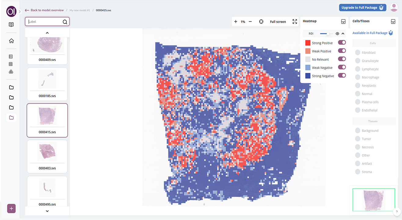 OI Suite translates complex multimodal AI into practical, intuitive tools that require no coding or AI expertise. Interactive heatmaps and cell-level visualizations trace predictions back to morphology, and biomarker insights allow researchers to generate and test hypotheses quickly and accelerate discovery.