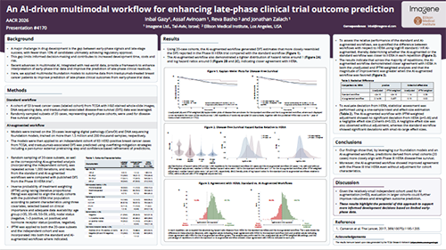 This poster presents an AI-driven multimodal workflow for breast cancer designed to enhance late-phase clinical trial outcome prediction. By augmenting small early-phase cohorts with multimodal foundation models and real-world data, the approach demonstrates improved alignment with Phase III outcomes. These results highlight the potential of multimodal modeling to extract meaningful signals from limited early-phase data, supporting more informed development decisions earlier in the pipeline.